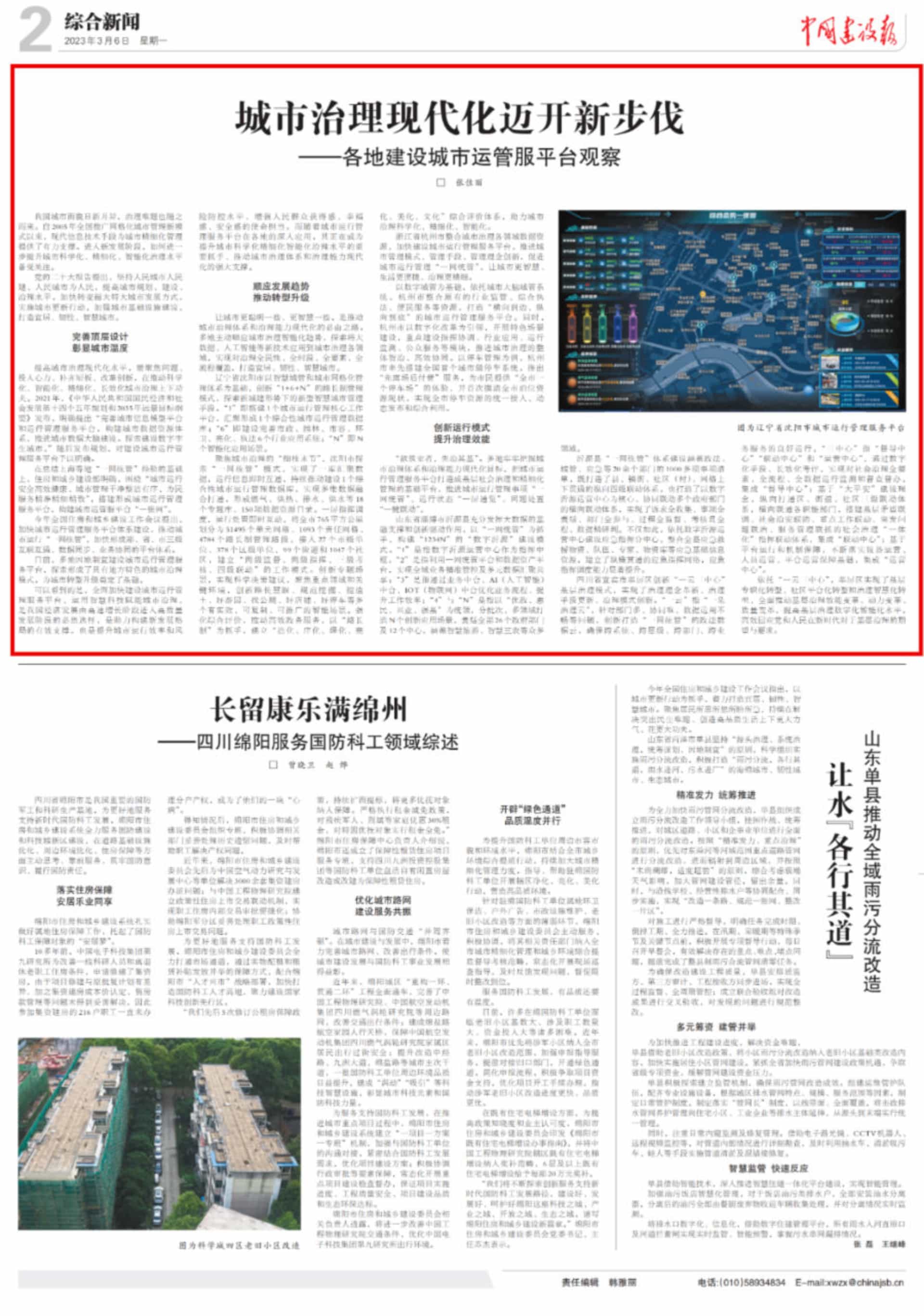 3月6日,中國建設(shè)報(bào)刊載文章《城市治理現(xiàn)代化邁開新步伐——各地建設(shè)城市運(yùn)管服平臺觀察》,介紹了沈陽、杭州、...