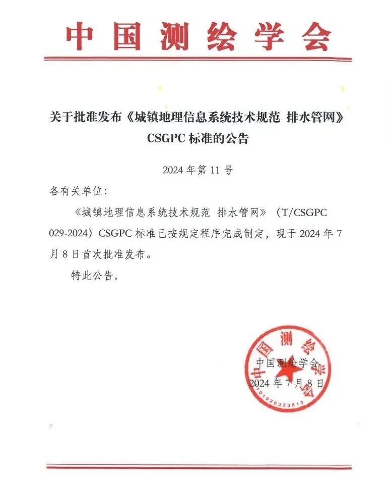 日前,由數(shù)字政通全資子公司保定金迪主編的《城鎮(zhèn)地理信息系統(tǒng)技術(shù)規(guī)范 排水管網(wǎng)》(T/CSGPC029-2024)CSGPC標準(...