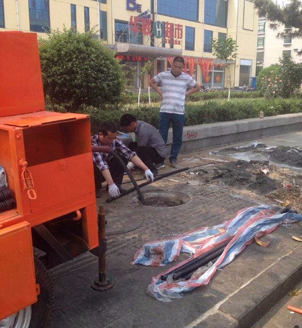 GQ-1800E型疏通機(jī)(自驅(qū)動式通水型、牽引式通水型),采用17馬力柴油機(jī)為動力,不用外接電源,配備有啟動裝置、高壓水泵、移動非常方便。采用直徑8mm彈簧鋼繞為直徑40彈性軟軸,還裝有卷揚機(jī)、可牽引鋼絲繩,用于清理管道內(nèi)的淤泥。疏通直徑90mm-1800mm的各種下水管道、電信電纜管道及油田輸油管道。(配帶彈性軟軸50m)